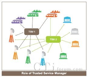 可信服務(wù)管理 (TSM)為復(fù)雜的、有眾多參與者的NFC生態(tài)系統(tǒng)帶來的穩(wěn)定性及可預(yù)見性。其核心作用是分配和管理各個(gè)服務(wù)提供商的應(yīng)用。它是移動(dòng)運(yùn)營商、銀行和公交公司的一個(gè)共同的聯(lián)絡(luò)點(diǎn)。對移動(dòng)NFC應(yīng)用進(jìn)行安全下載和生命周期管。可信服務(wù)管理必須贏得參與各方的信任才能完成這一任務(wù)。