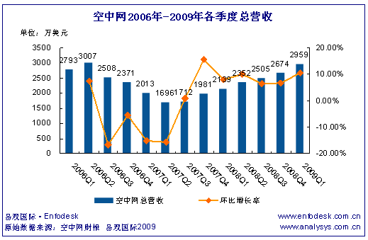 2009第1季度空中網(wǎng)總營(yíng)收2960萬美元
