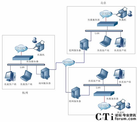 圖1-2 三匯傳真服務器典型組網(wǎng)圖(多服務器)