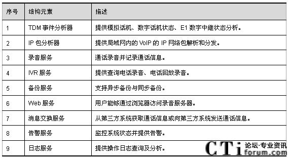 數(shù)字錄音系統(tǒng)通過模擬用戶線或者Lanside E1與交換機(jī)相連。當(dāng)錄音對(duì)象摘機(jī)通話時(shí),交換機(jī)將數(shù)字錄音系統(tǒng)和被錄音通話雙方建立會(huì)議,并通過CTI向數(shù)字錄音系統(tǒng)發(fā)出錄音啟動(dòng)命令;當(dāng)錄音對(duì)象結(jié)束通話時(shí),交換機(jī)將數(shù)字錄音系統(tǒng)和被錄音通話雙方拆除會(huì)議,并通過CTI向數(shù)字錄音系統(tǒng)發(fā)出錄音結(jié)束命令。
