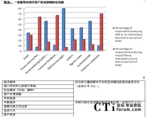 Verint(慧銳)EMEA地區(qū)總經(jīng)理和公司執(zhí)行官David Parcell說(shuō)到:“在這項(xiàng)CCA和Verint(慧銳)共同執(zhí)行的研究中顯示,許多組織正在竭盡全力理解客戶(hù)告訴他們的信息。我們十分欣喜地看到許多組織正在使用客戶(hù)反饋調(diào)查等手段來(lái)提高客戶(hù)滿(mǎn)意度。但是,消費(fèi)者們用來(lái)討論產(chǎn)品和服務(wù)體驗(yàn)的渠道實(shí)在太五花八門(mén)了,客戶(hù)反饋調(diào)查可以提供的信息內(nèi)容只是冰山一角。在波濤洶涌的水面下,還有巨量的信息等待著我們?nèi)ネ诰颍热鐏?lái)電互動(dòng)錄音、電子郵件、社會(huì)媒體談話(huà),甚至是客服代表的工作記錄-這一切內(nèi)容都可以為組織提供真正的客戶(hù)心聲。如今,許多領(lǐng)導(dǎo)品牌都開(kāi)始著手精確地分析客戶(hù)心聲。”