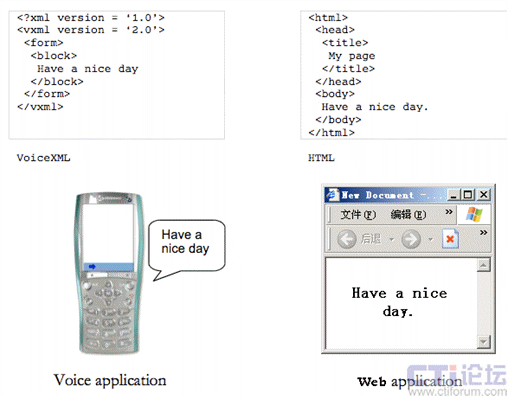 圖一、VoiceXML應用和WEB應用的比較