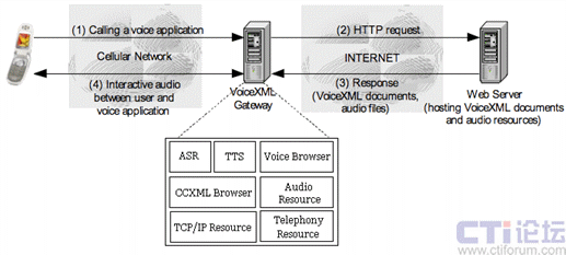 下圖(圖二)展示了基于VoiceXML的語音應用系統(tǒng)的基本架構: