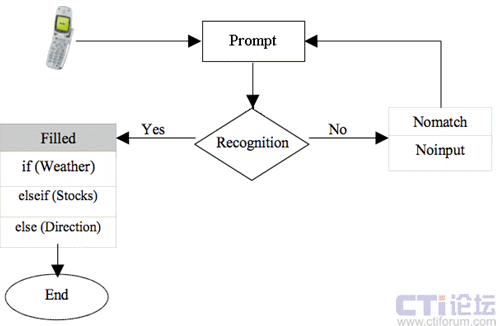 VoiceXML解釋器組件( VoiceXML Browser)解釋和執(zhí)行VoiceXML腳本語言并把結(jié)果轉(zhuǎn)換成語音傳送給用戶(圖中的步驟4)。在執(zhí)行過程中,用戶可能需要通過語音和VoiceXML服務器進行交互,比如菜單選擇或者對查詢結(jié)果進行過濾等。VoiceXML服務器通過呼叫控制組件(CCXML