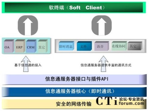 信息通系統(tǒng)是一個開放的體系結構,是一個平臺化、組件化的可擴展平臺。第三方廠商可以在信息通系統(tǒng)所提供SDK API的基礎上,開發(fā)具有即時通訊特性的應用。
