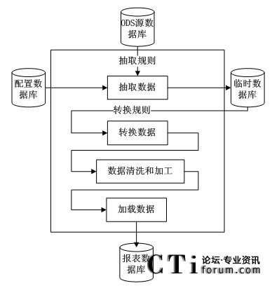 在ETL服務將抽取數據存儲到臨時數據庫后,再根據一定的轉換規(guī)則,對抽取的數據進行轉換。數據轉換完成后再對其進行一些必要的處理,清除那些不正確的,不完整的數據,再對數據的格式等進行加工,最后加載到報表數據庫中。