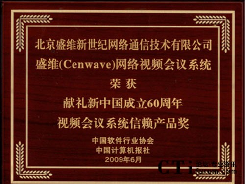 盛維榮膺“獻(xiàn)禮新中國成立60周年•中國軟件行業(yè)視頻會(huì)議系統(tǒng)信賴產(chǎn)品獎(jiǎng)”