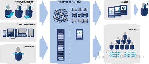 上述流程圖說明了Teleopti Pro的基礎(chǔ)。左邊為不同類型的輸入和集成。這可以是PBX呼叫數(shù)據(jù)、移動(dòng)運(yùn)營(yíng)商使用文件、人力資源/用戶數(shù)據(jù)等。中間為解決方案的核心,即將所有的資源進(jìn)行整合并連接至用戶和組織各層。設(shè)備管理的秩序和結(jié)構(gòu)幫助您整理,且針對(duì)不同組織層面和時(shí)期聚集成本。右邊為解決方案的不同輸出。這當(dāng)然是針對(duì)不同層次和時(shí)期的總結(jié)性和詳細(xì)性報(bào)告。該報(bào)告能夠通過電子郵件向用戶推送或通過基于用戶權(quán)限的Web應(yīng)用程序進(jìn)行訪問。連接至ERP系統(tǒng)在這里設(shè)立,用于成本自動(dòng)拒付/計(jì)費(fèi)。