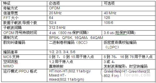 表2:IEEE802.11n 主要特性