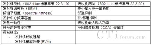 表4:802.11ac的發(fā)射機和接收機的測試要求