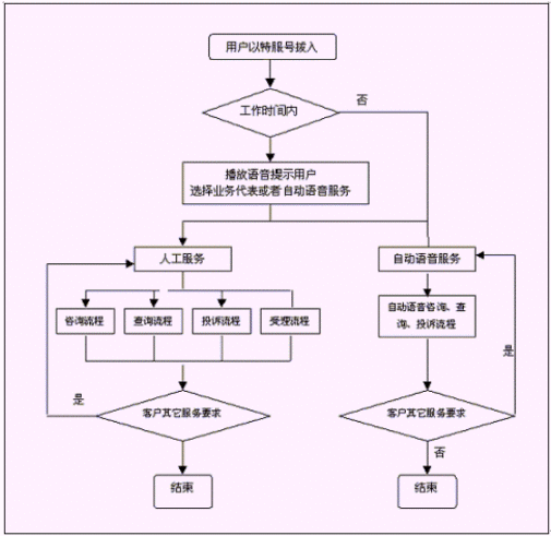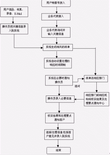 客戶也可以選擇自動(dòng)語(yǔ)音服務(wù)方式,根據(jù)系統(tǒng)的語(yǔ)音提示輸入按鍵,選擇類別,將自己所需要的服務(wù)要求以及自己的聯(lián)系方式信息以留言錄音的方式保存在系統(tǒng)中。系統(tǒng)同時(shí)還支持自動(dòng)傳真方式,客戶可以通過(guò)傳真機(jī)進(jìn)入本系統(tǒng),通過(guò)按鍵選擇傳真方式,將所需要的服務(wù)要求等的文本內(nèi)容傳真給系統(tǒng),系統(tǒng)自動(dòng)接受并存入數(shù)據(jù)庫(kù)。