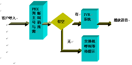 呼入一般都先通過ACD進(jìn)行排隊(duì),然后根據(jù)用戶選擇進(jìn)入子系統(tǒng),流程圖如下: