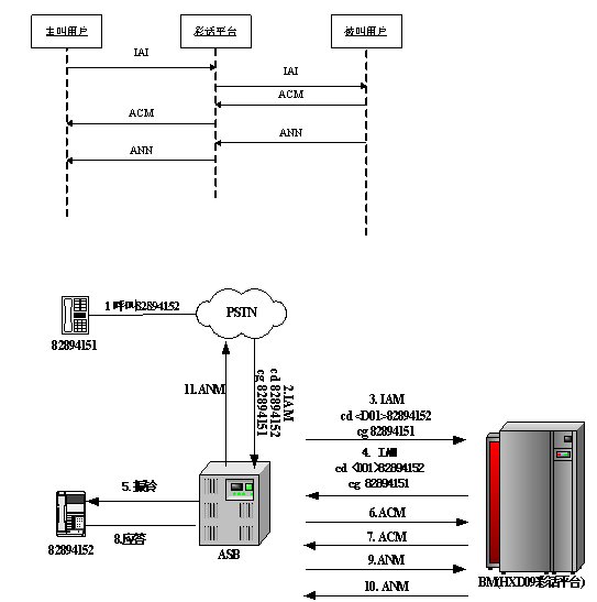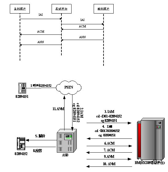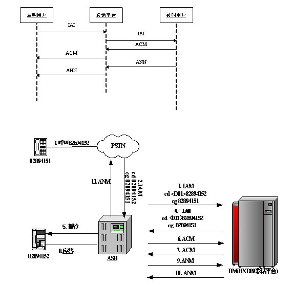 被叫彩話是指呼叫到達(dá)被叫方交換機(jī)時(shí),被叫方交換機(jī)檢測(cè)被叫擁護(hù)是否設(shè)置彩話業(yè)務(wù),如果沒有甚至彩話業(yè)務(wù),則直接向被叫用戶發(fā)起呼叫,當(dāng)被叫用戶摘機(jī)應(yīng)答后將雙方連接起來(lái)通話;如果設(shè)置了彩話業(yè)務(wù),則被叫方交換機(jī)將做兩個(gè)動(dòng)作:第一為向被叫用戶發(fā)起呼叫,第二為向彩話平臺(tái)發(fā)起呼叫,當(dāng)被叫用戶摘機(jī)應(yīng)答后,在被叫交換機(jī)上將產(chǎn)生一個(gè)會(huì)議,將主叫用戶、被叫用戶和彩話平臺(tái)加入到會(huì)議中。