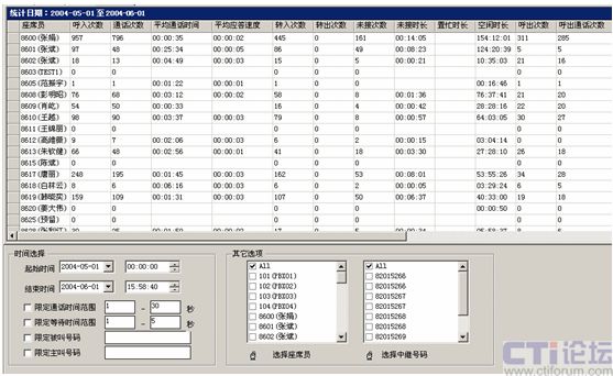 “系統(tǒng)”平臺(tái)可實(shí)現(xiàn)對(duì)整個(gè)電話咨詢的實(shí)時(shí)監(jiān)控,可以獲得任意一段時(shí)間內(nèi)中繼線的使用情況、座席的使用情況及工作狀態(tài)、進(jìn)出隊(duì)列等,通過多種圖示、詳細(xì)數(shù)據(jù)報(bào)表,可以找出一天、一周或一個(gè)月內(nèi)呼入總量、瞬間呼入峰值、呼入量分布特點(diǎn)等,從而合理地系統(tǒng)資源和值班人員,在緊急時(shí)間可適當(dāng)?shù)卦鰷p中繼線、座席、IVR端口的數(shù)量,確保系統(tǒng)運(yùn)行最為經(jīng)濟(jì),合理;還可以通過座席員接打電話情況報(bào)表,對(duì)座席員進(jìn)行科學(xué)的考評(píng)。