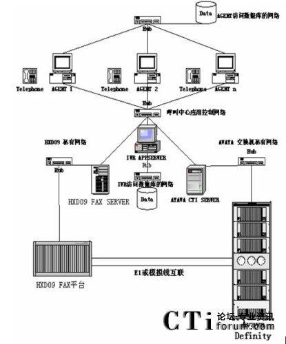根據(jù)客服系統(tǒng)的容量,坐席多特點,一般都采用國外品牌交換機(jī)做為接入設(shè)備,用HXD09設(shè)備作FAX或IVR系統(tǒng)?头臉I(yè)務(wù)主要為語音和傳真。HXD09系統(tǒng)在傳真和語音處理處理上在國內(nèi)產(chǎn)品的技術(shù)和價格上都有巨大優(yōu)勢。