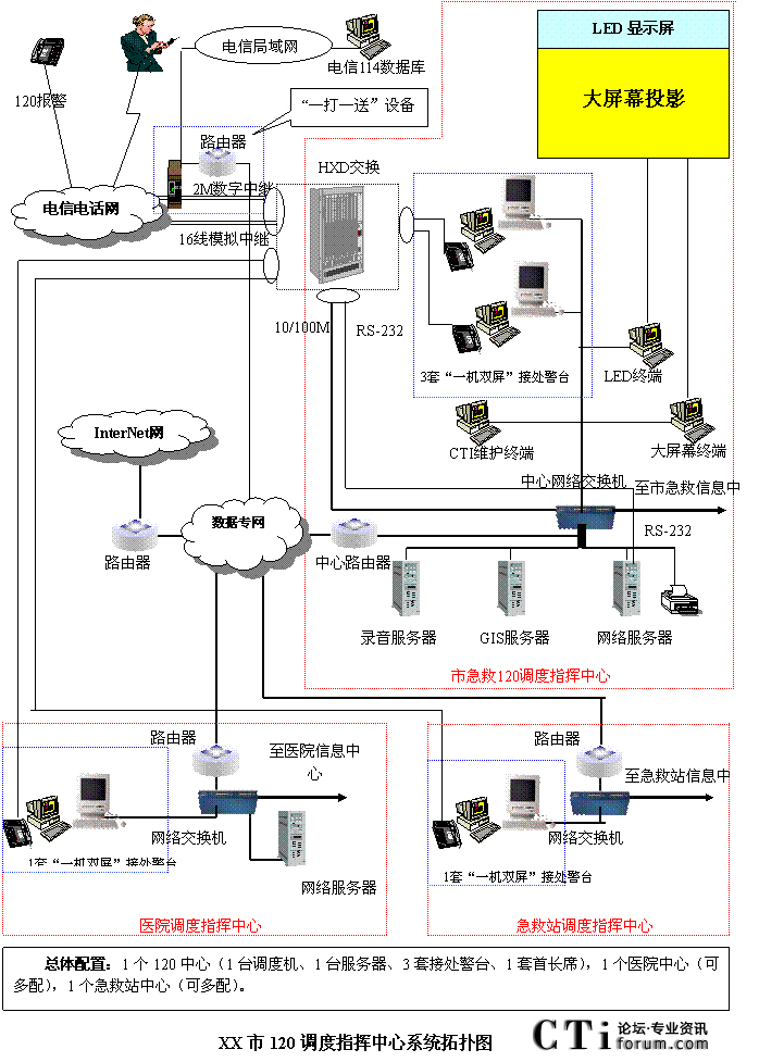 設備配置和性能指標以及之所以采用這種方法和配置的科學性、合理性等若干問題均作了較為詳盡地分析論述;同時,本方案還包含了貴方雖未明確要求但屬系統(tǒng)重要組成部分的一些技術內容(如大屏幕投影及GPS、急救分站等)。