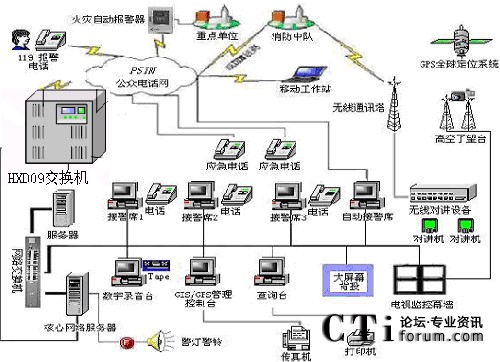 隨著國民經(jīng)濟(jì)的不斷發(fā)展,我國城市的現(xiàn)代化進(jìn)程在不斷加快,因而對(duì)消防部隊(duì)的反應(yīng)速度、調(diào)度指揮、現(xiàn)場(chǎng)搶險(xiǎn)救災(zāi)等綜合能力要求越來越高.現(xiàn)代化的消防通信指揮系統(tǒng)是受理火災(zāi)報(bào)警、實(shí)施通訊調(diào)度指揮、執(zhí)行滅火救災(zāi)工作的必不可少的技術(shù)裝備,它對(duì)于保護(hù)國家和人民生命財(cái)產(chǎn)的安全、保障經(jīng)濟(jì)建設(shè)的順利發(fā)展、維護(hù)社會(huì)的穩(wěn)定有著十分重要的意義.,恒訊達(dá)公司的(HXD09)交換機(jī)切合實(shí)際,綜合應(yīng)用現(xiàn)代通信技術(shù)、計(jì)算機(jī)網(wǎng)絡(luò)技術(shù)、結(jié)合地理信息技術(shù)、VOIP、虛擬現(xiàn)實(shí)技術(shù),開發(fā)了網(wǎng)絡(luò)化、智能化、可視化的、高度模塊化、以技術(shù)先進(jìn)、組網(wǎng)靈活、整體性強(qiáng)、實(shí)時(shí)性高、安全可靠、實(shí)用高效為特點(diǎn)的可編程智能語音交換機(jī),HXD09交換機(jī)接口易開放性,結(jié)合圖形化的流程生成器和二次開發(fā)接口,為119系統(tǒng)平臺(tái)開發(fā)商提供強(qiáng)大的平臺(tái)保證。