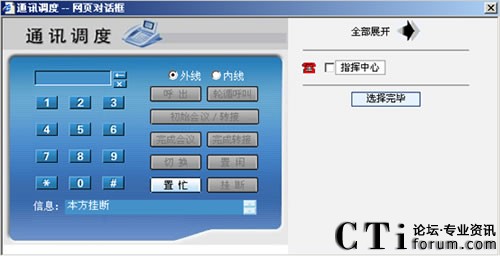 通話過(guò)程中擁有權(quán)限的班長(zhǎng)坐席可以對(duì)來(lái)電進(jìn)行強(qiáng)拆、強(qiáng)插或轉(zhuǎn)移給任何一部分機(jī)、外部電話、手機(jī),而無(wú)須讓對(duì)方再撥打一次電話 |