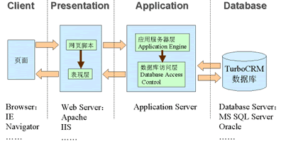 為了滿足移動辦公和分布式管理的需求,CRM系統(tǒng)將更多采用基于Browser-Server架構(gòu)的多層結(jié)構(gòu)。B/S結(jié)構(gòu)的特點是在客戶端使用標(biāo)準(zhǔn)的Web頁面瀏覽器(如Internet Explorer等),不需安裝特殊的應(yīng)用程序,減少了升級和維護的難度;所有的業(yè)務(wù)數(shù)據(jù)都保存在Server端,確保了數(shù)據(jù)的安全;在通訊方面,由于使用標(biāo)準(zhǔn)的HTTP協(xié)議,使得系統(tǒng)可以輕松的實現(xiàn)移動辦公和分布式管理。另外為了系統(tǒng)功能的可擴展性,應(yīng)該采用將數(shù)據(jù)庫、應(yīng)用層及表現(xiàn)層分離的多層結(jié)構(gòu)。獨立的數(shù)據(jù)庫層便于支持多種數(shù)據(jù)庫系統(tǒng),將實現(xiàn)企業(yè)邏輯的應(yīng)用層獨立使業(yè)務(wù)邏輯的更新和擴展更為方便,而當(dāng)需要支持手機、PDA等新的客戶端設(shè)備時只要對表現(xiàn)層進(jìn)行擴充就可以實現(xiàn)。同時,這種多層結(jié)構(gòu)也可以采用負(fù)載均衡與集群等技術(shù)實現(xiàn)系統(tǒng)的高可用性和性能的平滑擴展。