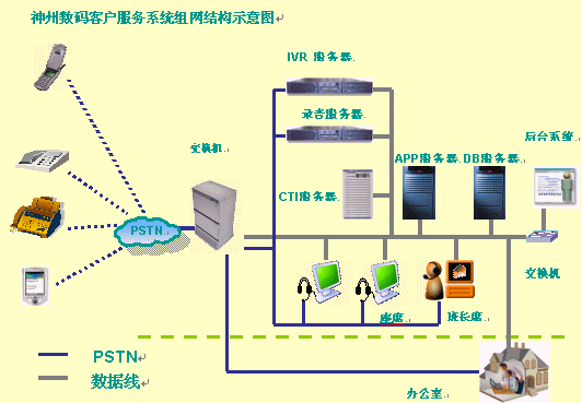 除了在線銷售方式外,神州數(shù)碼還采取了和各大銀行合作的方法,采用直復(fù)營銷的模式銷售其產(chǎn)品。隨著業(yè)務(wù)量的不斷增長,電話呼入訂單及咨詢、查詢、投訴等業(yè)務(wù)日趨漸多,為提高企業(yè)品牌形象,給客戶提供更好更快的優(yōu)質(zhì)服務(wù),神州數(shù)碼需要為各合作銀行提供個性化的接入,實(shí)現(xiàn)資源合理整合,提高整體工作效率。因此,迫切需要建立一套完整的呼叫中心客戶服務(wù)系統(tǒng),通過呼叫中心系統(tǒng)的建立,來實(shí)現(xiàn)電話、傳真、電子郵件、短信、語音留言等多渠道的接入,以進(jìn)行服務(wù)請求受理、業(yè)務(wù)訂單處理,達(dá)到方便快捷為客戶服務(wù)的目的。神州數(shù)碼于選擇了HOLLYCRM(合力金橋軟件)公司為其建設(shè)了呼叫中心,采用的是HollyC6