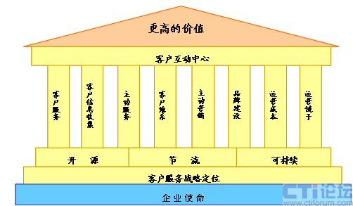 呼叫中心的未來(lái)之路涉及到呼叫中心價(jià)值的重新定位,需要從企業(yè)的戰(zhàn)略目標(biāo)著手,按照開源、節(jié)流和可持續(xù)三個(gè)基本原則,形成呼叫中心對(duì)企業(yè)目標(biāo)的支撐功能,然后按照新的支撐功能有步驟的開展相應(yīng)的流程變革和系統(tǒng)改造工作,從而使呼叫中心的使命重回服務(wù)于企業(yè)目標(biāo)的正確道路,跨入呼叫中心價(jià)值創(chuàng)新的全新時(shí)代。