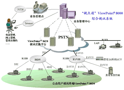 基于電信級(jí)視訊業(yè)務(wù)的需求,華為推出新一代的全交換公眾視訊業(yè)務(wù)產(chǎn)品--'視點(diǎn)通'ViewPoint8000綜合視訊系統(tǒng)。'視點(diǎn)通'可以方便地以ISDN撥號(hào)接入為主,兼容E1/V.35專(zhuān)線(xiàn)及IP接入的方式,組建綜合視訊業(yè)務(wù)網(wǎng)絡(luò)。 公眾化視訊業(yè)務(wù)的開(kāi)展不僅可以使ISDN等數(shù)據(jù)交換網(wǎng)絡(luò)又增加了一個(gè)極具吸引力的承載業(yè)務(wù),極大地促進(jìn)了ISDN等數(shù)據(jù)業(yè)務(wù)的推廣,實(shí)現(xiàn)現(xiàn)有ISDN等數(shù)據(jù)網(wǎng)絡(luò)的增值,更為重要的是綜合視訊網(wǎng)絡(luò)為電信運(yùn)營(yíng)商經(jīng)營(yíng)視訊業(yè)務(wù)提供了理想的平臺(tái),使得視訊業(yè)務(wù)在各行各業(yè)廣泛應(yīng)用成為可能。