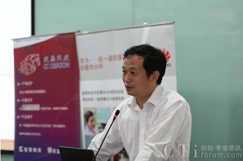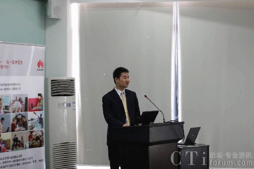 圖:華為軟件UC市場技術(shù)經(jīng)理穆立昌分享華為統(tǒng)一通信解決方案