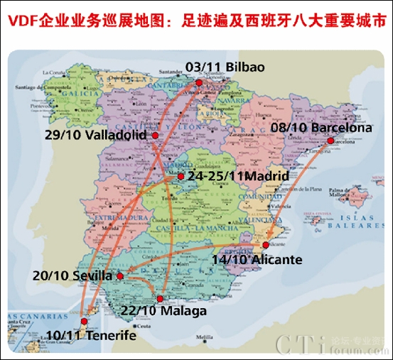 Vodafone 09企業(yè)業(yè)務(wù)巡展是Vodafone攜手10家重要合作伙伴和28家SP針對(duì)西班牙企業(yè)用戶舉行的一個(gè)大型巡展,整個(gè)展會(huì)歷時(shí)兩個(gè)月,以西班牙的經(jīng)濟(jì)文化中心Barcelona為起點(diǎn),途徑Alicante、Sevilla、Malaga、Valladolid、Bilbao、Tenerife,最后于11月24-25號(hào)在西班牙首府Madrid隆重謝幕。共有1萬多人、五千多家企業(yè)參加了本次展會(huì),受邀企業(yè)覆蓋到金融、貿(mào)易、電信、交通、建筑、服務(wù)、醫(yī)療保健等重要行業(yè),其中大都為移動(dòng)辦公需求旺盛需要保持實(shí)時(shí)協(xié)同的中小型企業(yè)。展會(huì)期間,華為歐洲地區(qū)部多位高層領(lǐng)導(dǎo)親臨展會(huì)現(xiàn)場(chǎng)指導(dǎo)工作,包括Vodafone系統(tǒng)部副總Edward Chan和張文林、代表處代表謝新平、歐洲軟件業(yè)務(wù)部領(lǐng)導(dǎo)林劼。領(lǐng)導(dǎo)們和客戶親切交流,并廣泛了解了其他SP展出的多項(xiàng)創(chuàng)新業(yè)務(wù)。