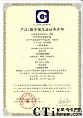 華為獲得國(guó)內(nèi)第一張交換機(jī)產(chǎn)品碳足跡認(rèn)證證書(shū)