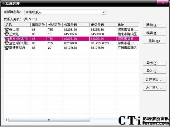 在A8電腦傳真機(jī)的電話商務(wù)通軟件主界面,雙擊通話記錄中的某個(gè)客戶號(hào)碼,或選中該號(hào)碼點(diǎn)擊下面的通話歷史按鈕,您與該客戶的通話歷史便一覽無余。選中某個(gè)記錄,您可以對(duì)其進(jìn)行編輯(添加姓名、備注該次通話的內(nèi)容),刪除,軟件撥出,加入電話簿等操作。