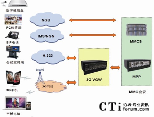 鑒于傳統(tǒng)視頻會議只能在固定地點(diǎn)、專用線路,通過專用設(shè)備召開語音和視頻會議的局限性。3G移動視頻會議解決方案實(shí)現(xiàn)了將會議拓展到整個互聯(lián)網(wǎng)和移動網(wǎng)絡(luò),用戶隨時隨地可以使用3G手機(jī)和PC,通過互聯(lián)網(wǎng)、移動網(wǎng)絡(luò)即可便捷地接入到現(xiàn)有會議系統(tǒng)中,真正實(shí)現(xiàn)跨越地域、空間的全方位會議。