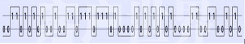模擬信號(hào)的形成比較簡(jiǎn)單、直觀,但在傳輸過程中容易受到外界干擾發(fā)生畸變,從而降低通信質(zhì)量;數(shù)字通信是與模擬通信不同的另一種通信方式。數(shù)字信號(hào)的傳輸、記錄、處理都采用數(shù)字(“0”和“1”)信號(hào)。由于數(shù)字信號(hào)抗干擾強(qiáng)、生產(chǎn)的畸變小,也容易消除,因而可以大大提高通信質(zhì)量。使用PCM(Pulse-Code Modulation)調(diào)制后的采樣聲波如下所示:
