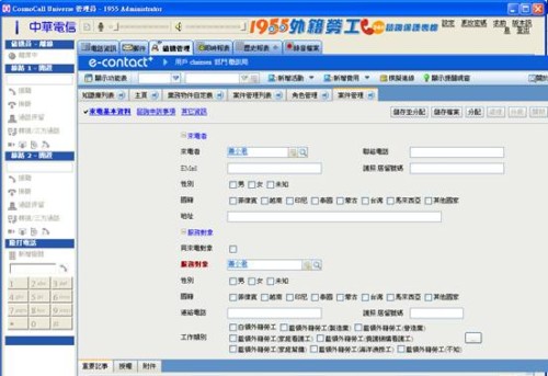 相信不久的將來(lái),e-Contact+ 一定會(huì)成為各企業(yè)競(jìng)相爭(zhēng)購(gòu)的明星產(chǎn)品!截至目前,確認(rèn)導(dǎo)入此套產(chǎn)品的公司包含臺(tái)北縣政府的個(gè)案輔導(dǎo)管理、中華電信的客服活動(dòng)關(guān)懷軟體、1955外籍勞工24小時(shí)咨詢保護(hù)專線,這三家公司透過(guò)業(yè)務(wù)自行定義物件中的調(diào)整客制化欄位,使用基礎(chǔ)模組的客戶管理,再配合其他相關(guān)模組物件導(dǎo)入,讓工作流程與資料再單一畫(huà)面下容易被管理。
