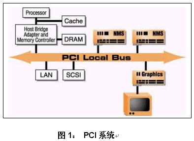 PCI(Peripheral Component Interconnect)本地總線是采用多路地址和數(shù)據(jù)線的高性能32位/64位總線。在采用NMS板卡的系統(tǒng)中,PCI總線用來在NMS板卡和主機處理器之間傳遞數(shù)據(jù)和控制信息。其它外圍附加板卡通常與NMS板卡共享總線。(參見圖1)