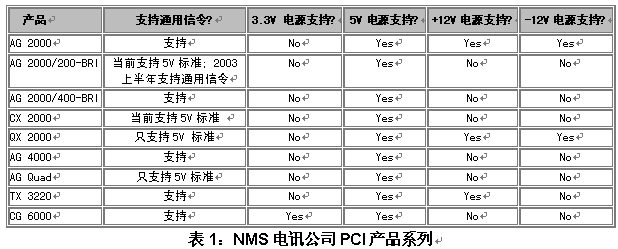 表1列出了當前和即將推出的NMS板卡可支持的信令標準,以及NMS板卡對主板電源輸入范圍的需求。
