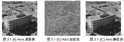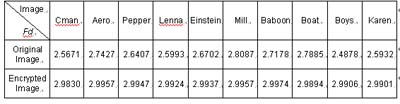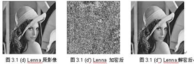 加密過后的影像,不論以人類的視覺直接觀看,或計算其碎形維度D (Fractal Dimension),都顯示影像達到完全混亂的程度。(2)