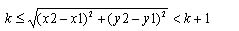 其中f(x1, y1),f(x2, y2)為圖中距離大于k、小于k+1的任兩點的值,即x1、y1、x2、及y2要符合下列式(3.2)的判斷式。又npn(k)代表的是,圖中所有符合上列條件的點對數(shù)。