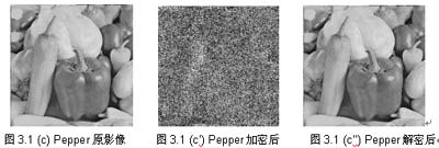 經(jīng)過仿真加密過后的圖片影像誠如圖3.1(a’)、圖3.1(b’)、圖3.1(c’)及圖3.1(d’)所示,其能達到極度的混亂程度。而其原圖的碎性維度與加密過后影像的碎性維度,計算之后如表3.1所示