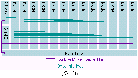 I2C總線使用100Khz時鐘和3.3V信號。ATCA規(guī)范制定要求2個IPMB總線,分別冠以IPMB-A和IPMB-B,兩條總線合一稱之為IPMB-0。IPMB可以以雙總線或雙星型配置方式實現(xiàn)。之所以要求雙IPMB總線是為了保證系統(tǒng)管理子系統(tǒng)的可靠性。IPMB總線被用作聯(lián)接ShMC與ATCA單板和ATCA機架中FRUs的橋梁。雙IPMB總線可同時被使用以加倍傳輸頻寬,但設計者必須考慮萬一其中一條IPMB總線失靈所帶來的沖擊。典型的ATCA背板上系統(tǒng)管理間的互聯(lián)如下圖所示,在背板上有兩個ShMC槽位,兩個交換槽位,11個節(jié)點槽位和1個風扇的連接。值得說明的是管理總線與所有的節(jié)點槽、交換槽通過一對雙備援的ShMC聯(lián)接。
