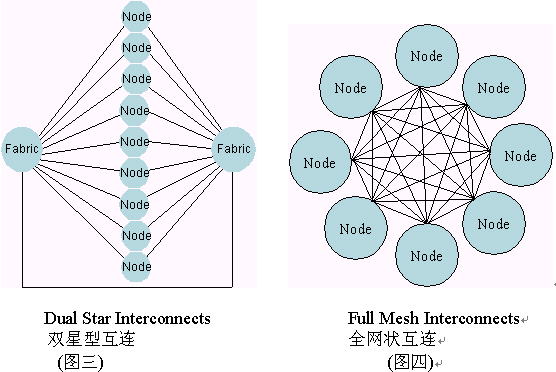 交換接口是ATCA機框中的主要數(shù)據(jù)傳輸接口。ATCA協(xié)議在每個板子上定義了多達15個通訊通路。這些通訊通路可以被配置成全網狀拓撲結構或雙星型拓撲結構。在雙星拓撲結構中每塊板同兩個不同的交換板都有通路。交換板在機框中扮演交換核心的角色。在全網狀拓撲結構中,每一個單板與其它任意單板都保持一個鏈接通路。下圖描繪了雙星型和全網狀結構中的內部互鏈的配置。
