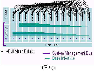 在上面的背板圖中,兩個交換槽位在ATCA機框中提供一個雙星型的基本接口。這個背板也支持可選的交換槽位和機框管理控制器之間的鏈接通路。