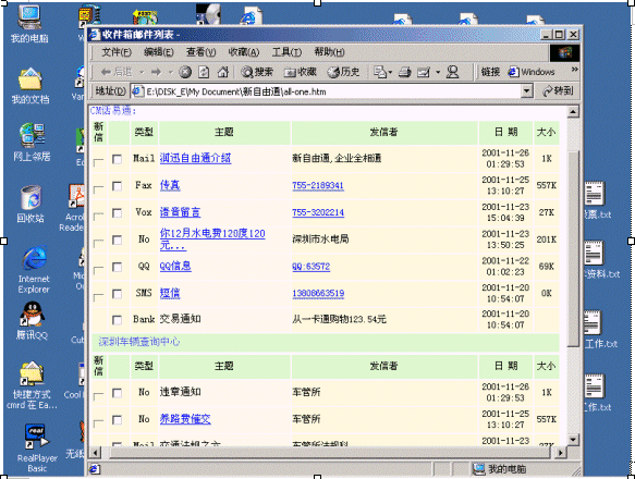 傳統(tǒng)郵件系統(tǒng)作為信息交換的手段在PC后的互聯(lián)網(wǎng)絡(luò)時(shí)代廣為運(yùn)用,但是,郵件系統(tǒng)一個(gè)大的缺點(diǎn)是離不開電腦。CTI技術(shù)技術(shù)通過(guò)傳統(tǒng)的電話網(wǎng)絡(luò)傳遞語(yǔ)音信息。電話網(wǎng)具有廣泛普及,人人使用這一特點(diǎn),這兩大技術(shù)的發(fā)展促使兩大技術(shù)的融合,那就是隨時(shí)隨地(anytime and anywhere)人們都可以通過(guò)電話,電腦使用郵件,訪問(wèn)郵件。