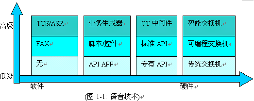 語言產(chǎn)品線可以用如下(圖1-1)一條技術(shù)柱心表示, 在每一個(gè)技術(shù)層面上, 國內(nèi)通信企業(yè)都有相應(yīng)的產(chǎn)品, 不同技術(shù)層面技術(shù)組合,成為一系列列產(chǎn)品解決方案.