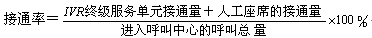 - 定義:對(duì)于具有IVR和ACD的呼入式呼叫中心,接通率是指IVR終級(jí)服務(wù)單元的接通量與人工座席的接通量之和與進(jìn)入呼叫中心的呼叫總量之比。