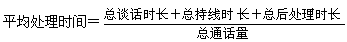 - 定義:是指某一統(tǒng)計(jì)時(shí)段內(nèi),座席與顧客談話時(shí)間、持線時(shí)間及事后處理與電話相關(guān)工作內(nèi)容的時(shí)間的總和除以總的通話量。