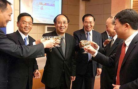 國(guó)務(wù)院新聞辦領(lǐng)導(dǎo)和上海貝爾阿爾卡特股份有限公司官員合影留念