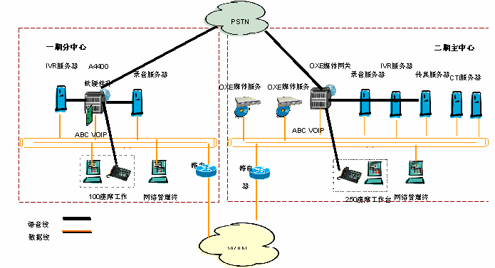 基礎(chǔ)語音系統(tǒng)采用阿爾卡特OmniPCX Enterprise語音通信平臺,它采用分布式的語音體系架構(gòu),完全融合IP技術(shù),并可集成傳統(tǒng)的TDM語音。OmniPCX Enterprise提供開放的標(biāo)準(zhǔn)和靈活的擴(kuò)展能力,并提供99.999%的高可靠性。讓用戶靈活的配置其座席的地理位置和通信方式,并保證系統(tǒng)運(yùn)行安全可靠。OmniPCX Enterprise交換機(jī)(二期)計劃采用Appliance Server呼叫服務(wù)器雙備份結(jié)構(gòu),提供RSI接口與GENESYS相連,以及并線錄音系統(tǒng)接口。今后,項(xiàng)目還將采用先進(jìn)的阿爾卡特-My Phone IP WEB軟電話,提高內(nèi)部通信能力,優(yōu)化業(yè)務(wù)流程。