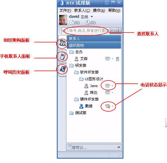 OmniRTX插件實現(xiàn)了在RTX界面上,直接對企業(yè)內部電話終端進行基本呼叫業(yè)務和電話增值業(yè)務的控制、設置和管理,更加方便的提供了企業(yè)內部員工之間的交流,進一步改善企業(yè)與客戶之間的溝通渠道,所有的溝通和交流不再受時間、空間的限制,更高質量的解決了企業(yè)在語音、文字、圖片以及視頻等多方面的效率問題。
