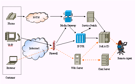 FineSupportIP Contact Center基于先進的LodeSoft iAfx體系架構(gòu),完全統(tǒng)一來自電話和Internet的客戶服務(wù)請求。來自PSTN的電話語音首先經(jīng)由媒體網(wǎng)關(guān)轉(zhuǎn)換為IP電話數(shù)據(jù)流,具有完全分布式特性,能夠幫助江蘇網(wǎng)通實現(xiàn)多點的、虛擬統(tǒng)一的客戶服務(wù)中心的目標(biāo);其基于VoIP技術(shù)的軟件ACD(自動呼叫分配器)根據(jù)呼叫類型、服務(wù)人員忙閑狀態(tài)、可定制的分配策略進行呼叫分配;基于Voice XML技術(shù)的IP-IVR單元,可以靈活地定義自動語音服務(wù);系統(tǒng)另一顯著特點是系統(tǒng)遵循開放性原則,可集成第三方硬件和第三方業(yè)務(wù)軟件,使網(wǎng)通逐步實現(xiàn)統(tǒng)一、全面的客戶服務(wù)體系。