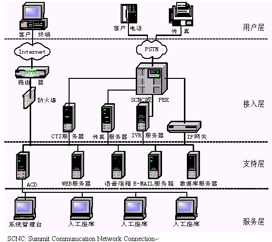提供Internet接入的接口。采用Internet技術(shù),實現(xiàn)與客戶之間的交互式文本交談、IP語音交談,提供網(wǎng)頁連接/傳送接口。